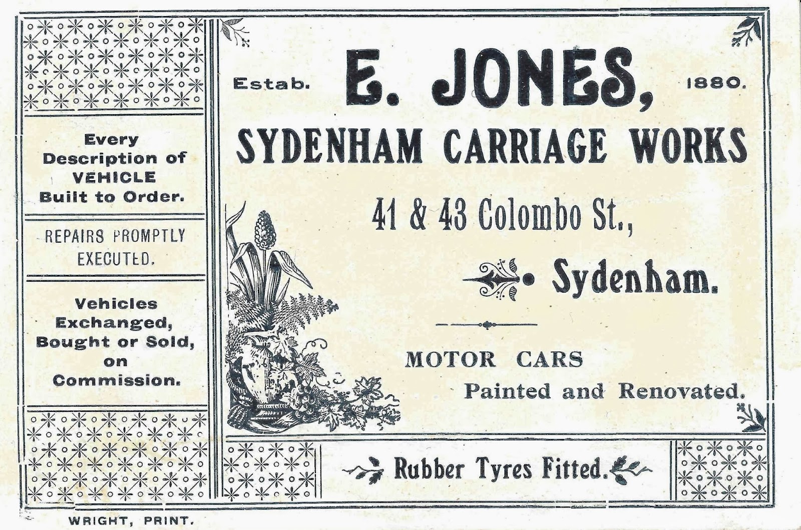Edward Jones Carriage Builder, Sydenham Carriage Works. Colombo Street.